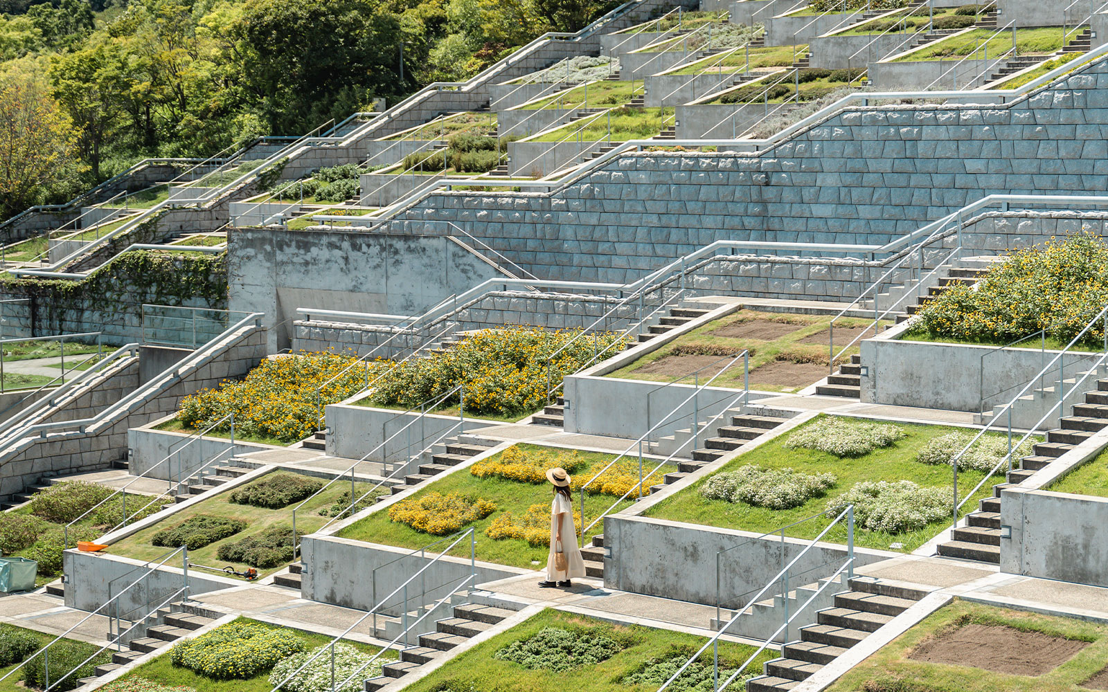 建築家・安藤忠雄氏が設計した複合リゾート施設。AYUMIさんが一番行ってみたかったのは、山の斜面に100個の花壇が階段状に並ぶ「百段苑」。四季の花々に彩られた庭園はまるで立体迷路のようで、空中遊歩道から眺める景色も壮観です。ほかにもシンメトリーな階段が印象的な「空庭」、淡路瓦が美しい「淡路夢舞台国際会議場」4階中庭など、安藤建築の世界を満喫しました。