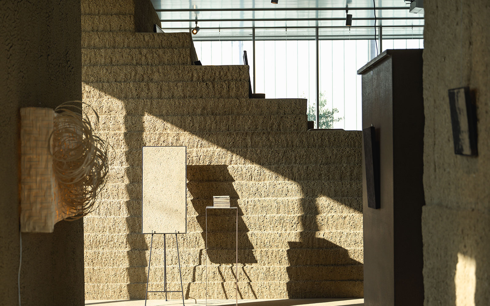 土をテーマにした新感覚のミュージアム。館内の土壁や階段などはすべて淡路土でできており、左官職人の技術、土が生み出す豊かな表情を体感できます。床は隆起する大地をイメージして作られた土間となっており、素足で歩くのがおすすめ。ざらざらした質感が心地よく、感覚が研ぎ澄まされます。飲める土を使ったスムージーもいただき、土の魅力を五感で満喫しました。